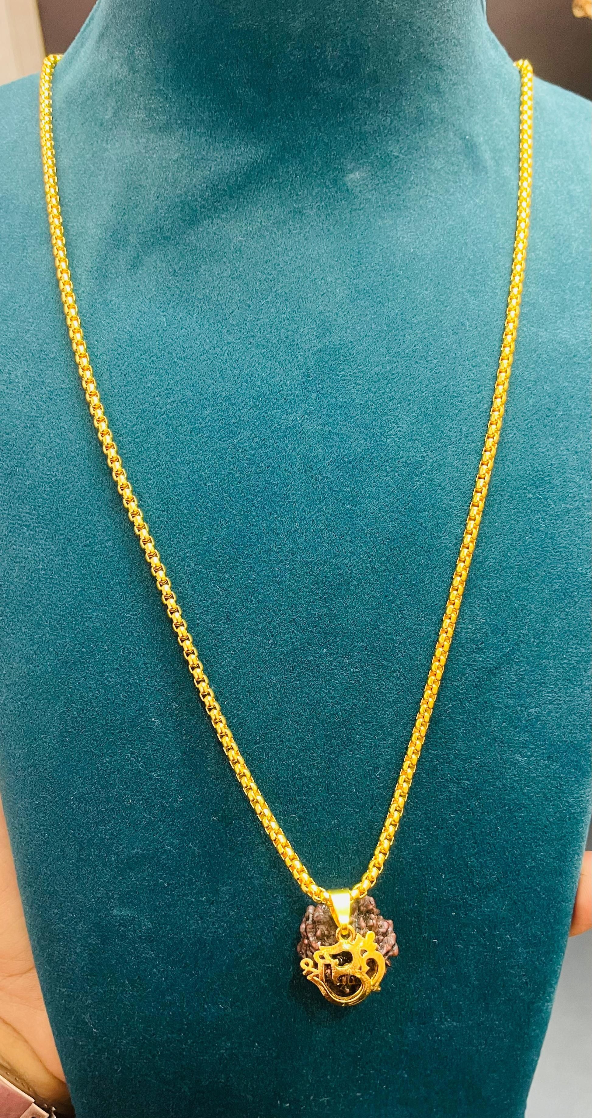 Product Name: Om Rudraksha Pendant With Chain Package Contains: It has 1 Pendant Chain Material: Alloy Color: Gold Occasion: Casual Combo: Pack of 1 Ideal for: Men